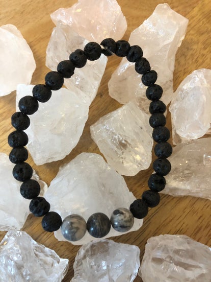 Handgefertigtes Armband mit Lava- und Edelsteinen